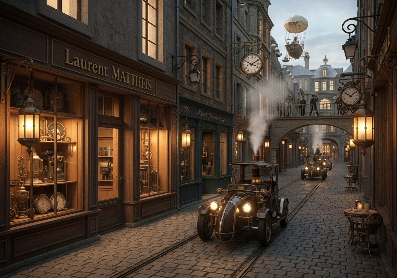 Laurent Matheïs construit des décors aux accents steampunk, film noir, qui s'inspirent à la fois du cinéma du XXe siècle et de l'univers de la bande dessinée réaliste. Riches en détails : dômes de verre, ponts suspendus, lampadaires à gaz, horloges gigantesques et dirigeables qui veillent dans le ciel. L'univers urbain rétrofuturiste mécanisé est omniprésent comme celui de la science fiction et des contes de fées.